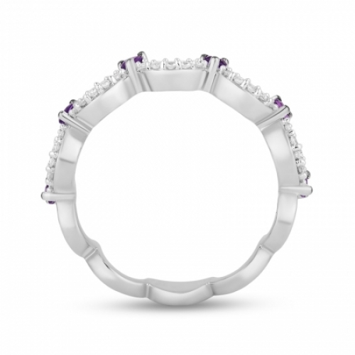Средние характеристики: аметист фиолетовый диаметром 2 мм, огранка Круг; круглый бриллиант