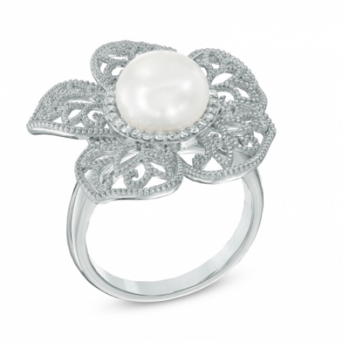 Средние характеристики: жемчуг белый, размер: 9 мм, огранка Круг; круглый бриллиант