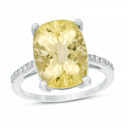 Средние характеристики: кварц желтый, размер: 14x10 мм, огранка Кушон (подушка); круглый бриллиант