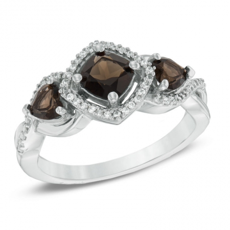 Средние характеристики: кварц коричневый, размер: 5x4 мм, огранка Кушон (подушка); круглый бриллиант