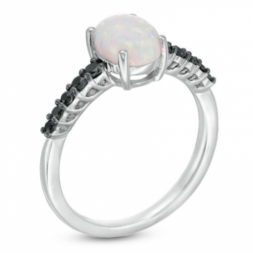 Средние характеристики: опал белый, размер: 8x6 мм, огранка Овал; круглый черный бриллиант