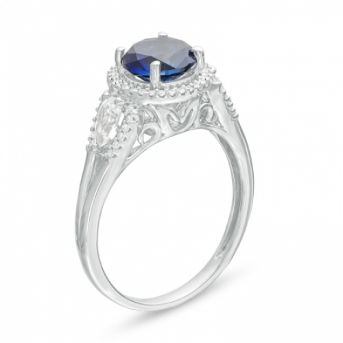 Средние характеристики: сапфир гт голубой, размер: 7 мм, огранка Круг; белый сапфир гт, размер: 5x3 мм, огранка Груша; круглый белый бриллиант
