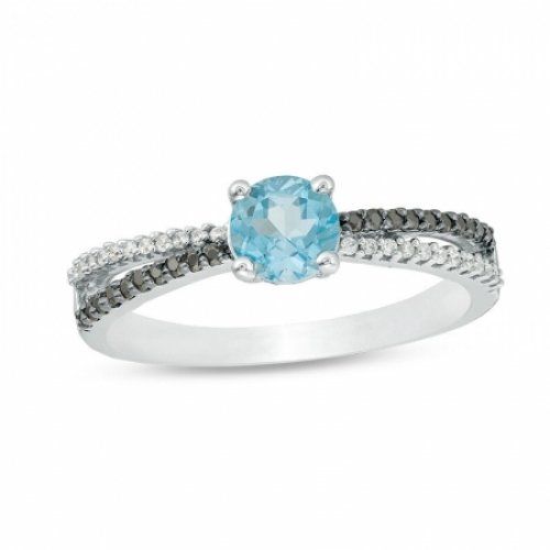 Средние характеристики: топаз голубой, размер: 5 мм, огранка Круг; круглый черный бриллиант; круглый белый бриллиант