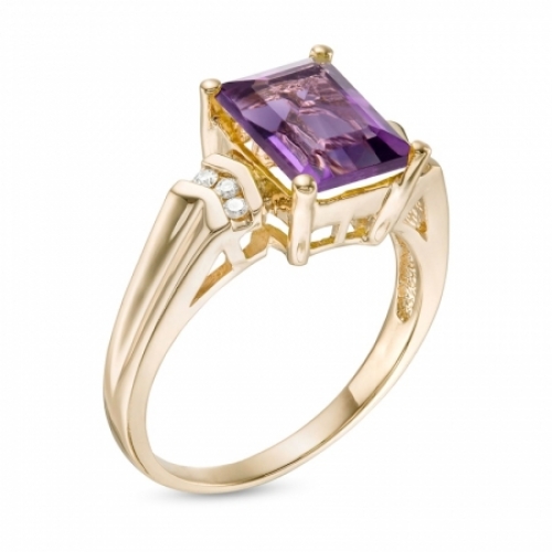 Средние характеристики: аметист фиолетовый, размер: 9x7 мм, огранка Октагон; круглый бриллиант