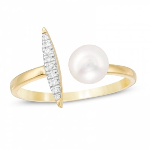 Женское кольцо из желтого золота 585 пробы с белым жемчугом и бриллиантом