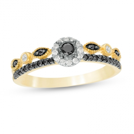 Женское кольцо из желтого золота 585 пробы с черными и белыми бриллиантами