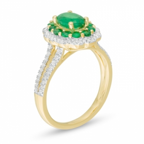 Средние характеристики: изумруд зеленый, размер: 7x5 мм, огранка Овал; изумруд, размер: 2 мм, огранка Круг; круглый белый бриллиант