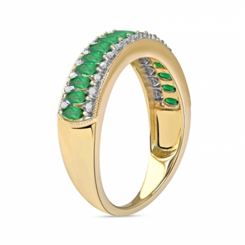 Средние характеристики: изумруд зеленый, размер: 3x1.5 мм, огранка Маркиз; круглый бриллиант