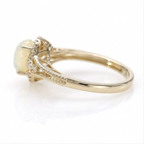 Средние характеристики: опал белый, размер: 6x8 мм, огранка Овал; круглый бриллиант