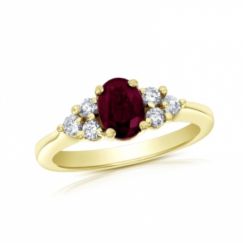 Средние характеристики: рубин красный, размер: 7x5 мм, огранка Овал; круглый бриллиант